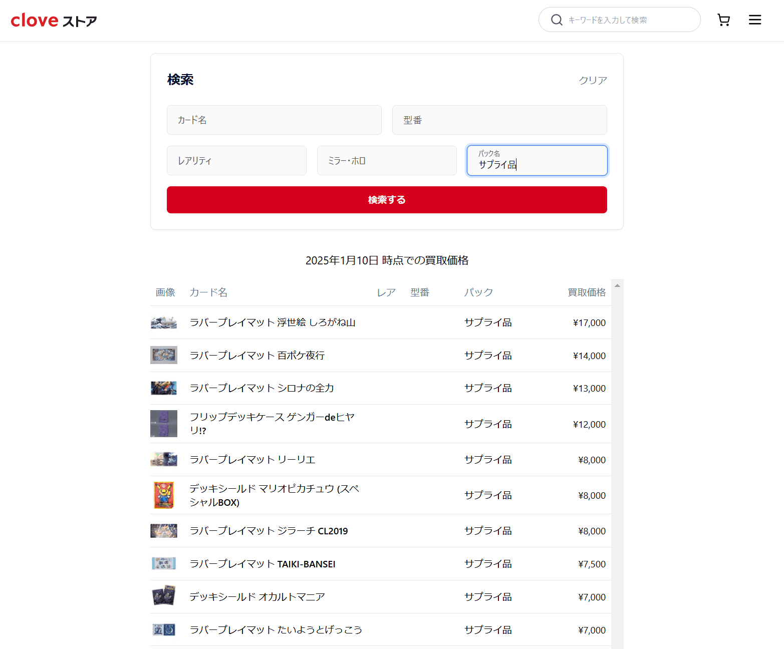 買取させて頂いた商品は随時cloveストアで展開予定です。カードだけでなくサプライ商品も日本一の品揃えを目指してお客さまにとって