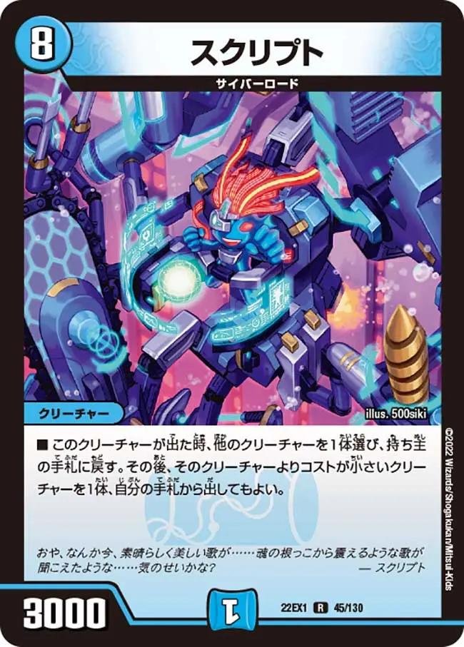 出た時に他のクリーチャーを1体選び、持ち主の手札に戻し、その後そのクリーチャーよりコストが小さいクリーチャーを1体、自分の手札から出すことができる優秀なクリーチャーです。