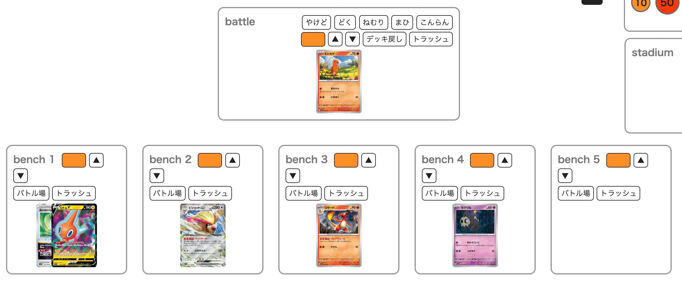 - ヒトカゲやポッポを場に並べて次のターンの進化に備えます。