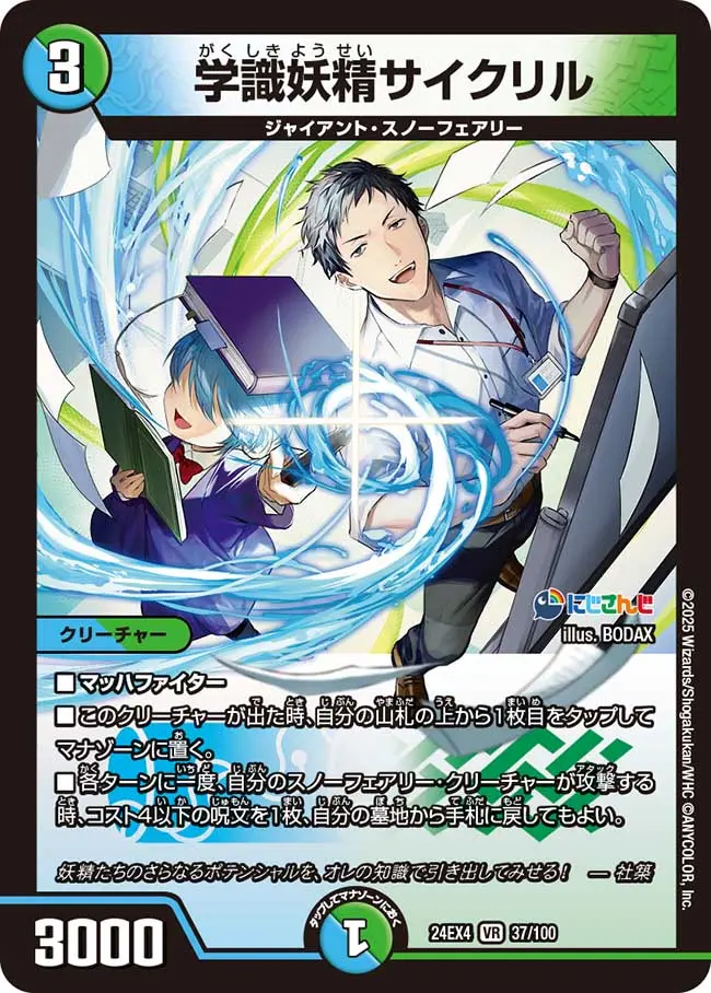 出た時に自分の山札の上から1枚目をタップしてマナゾーンに置くことができるので、序盤に出すことができれば対戦を有利に進めることができます。